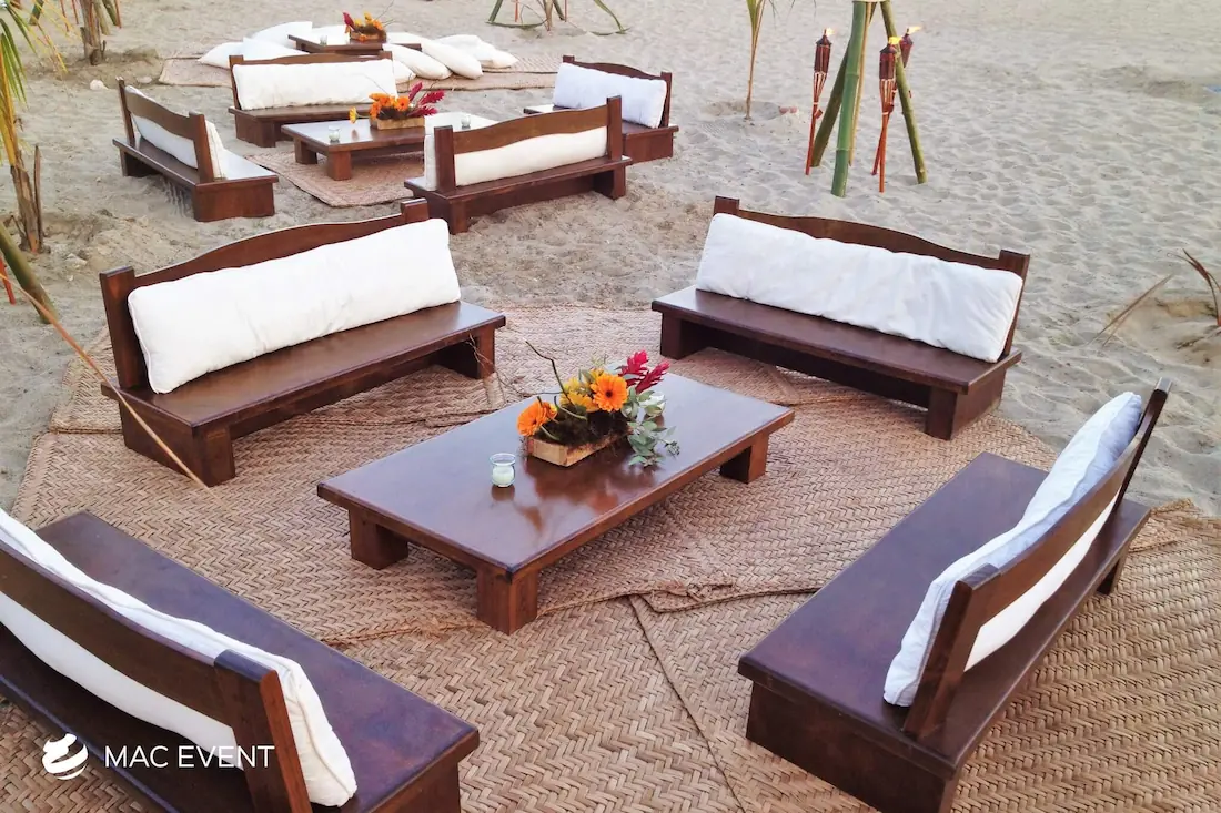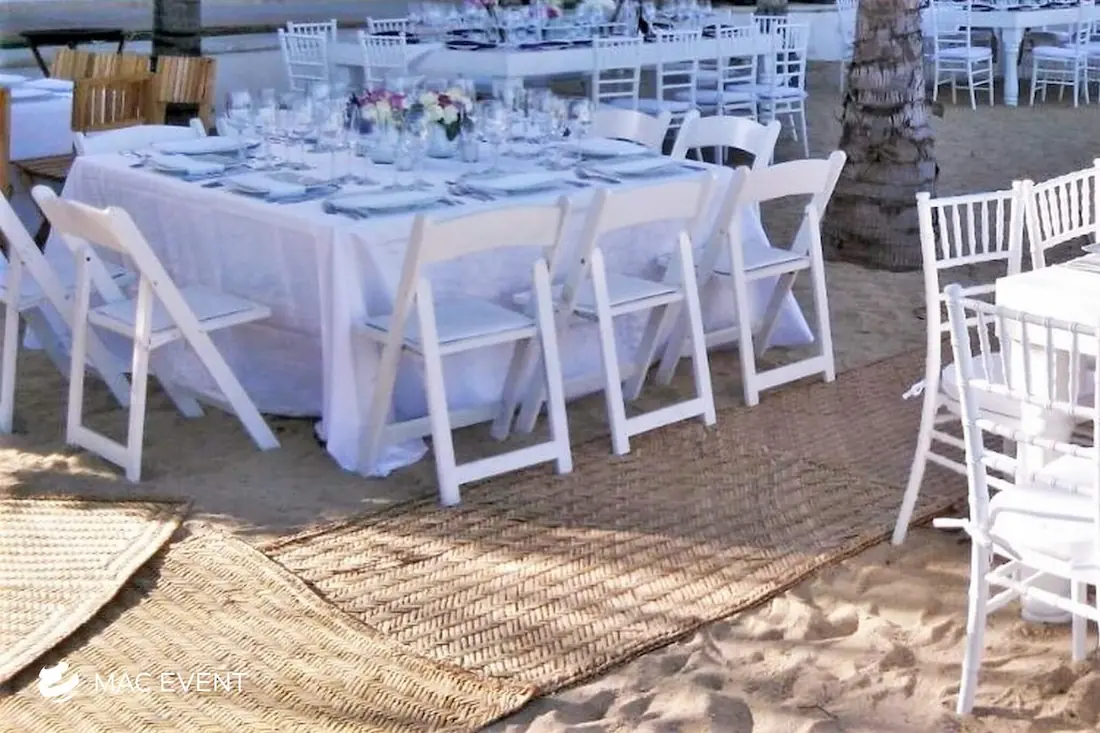 The petate mat adds a touch of authentic Mexican tradition to weddings, beach parties, and corporate events in Ensenada. Woven from natural palm fibers, this event décor rental brings texture, warmth, and cultural charm to your setup. Perfect for picnic lounges, rustic themes, or boho-inspired spaces, the petate mat serves as a stylish base for floor seating, decorative accents, or display areas. Renting petate mats in Ensenada allows you to create organic and inviting environments that reflect local craftsmanship. For a natural and culturally rich detail, the petate mat is a beautiful addition to any event.